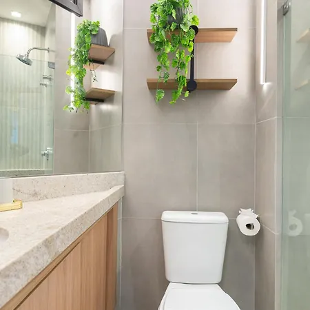 With self-catering amenities like a kitchen, Flat Garden Charmoso, Pe Na Areia E Vista Mar Apartment also boasts an outdoor dining area where guests can relax and indulge in their meals. There is a terrace as a spot to unwind.